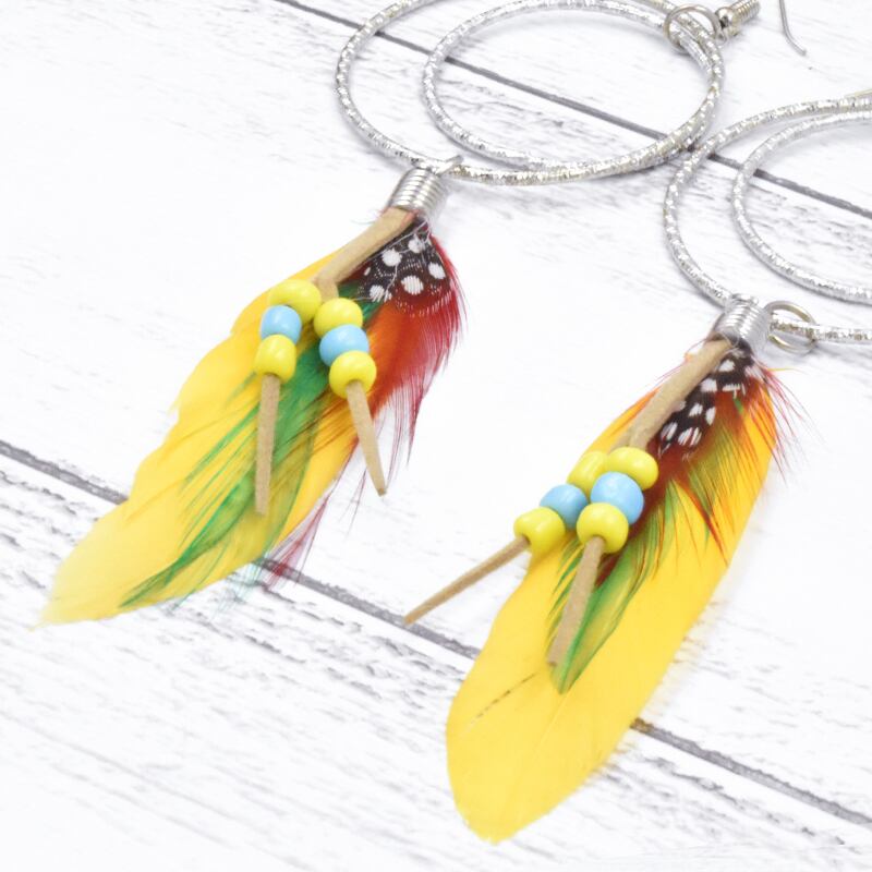 見てるだけでも飾っているだけでも元気がもらえるはっきりとしたカラーの羽ピアスです。