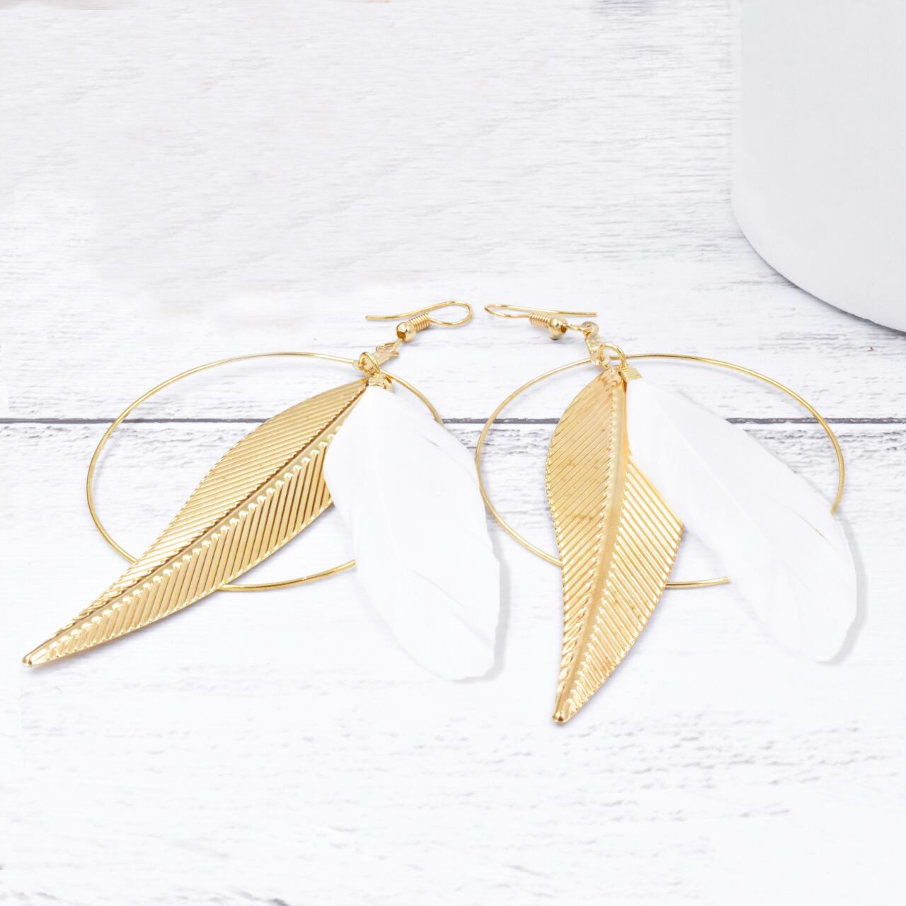 ゴールドの大きなリーフと大きな羽が特徴のスタイリッシュなピアスです。