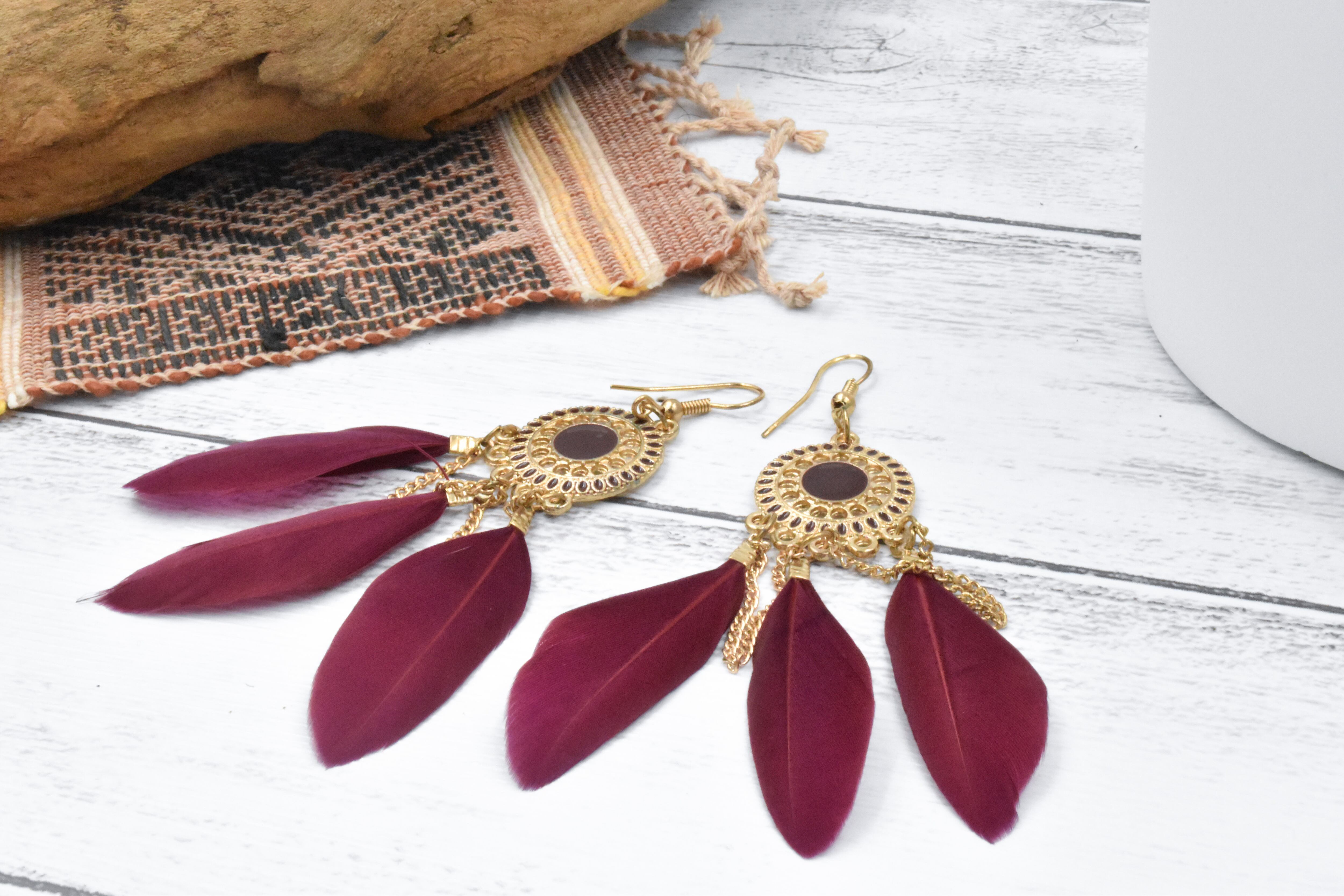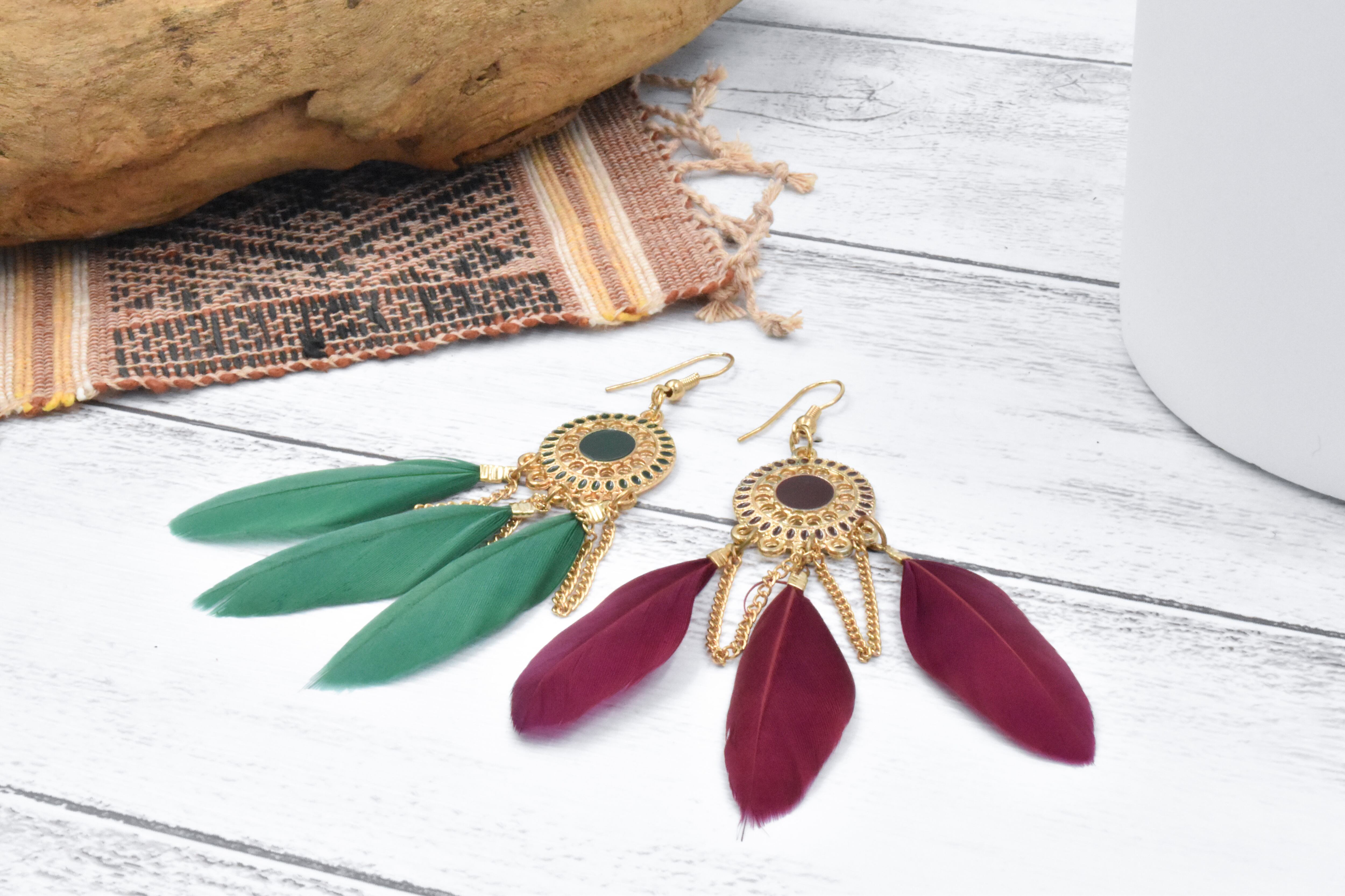 【送料無料】P40 ドリームキャッチャー ゴールド グリーン ワインレッド フェザー エスニックピアス ピアス エスニック アクセサリー アジアン ドリームキャッチャー エレガント | gleam_h