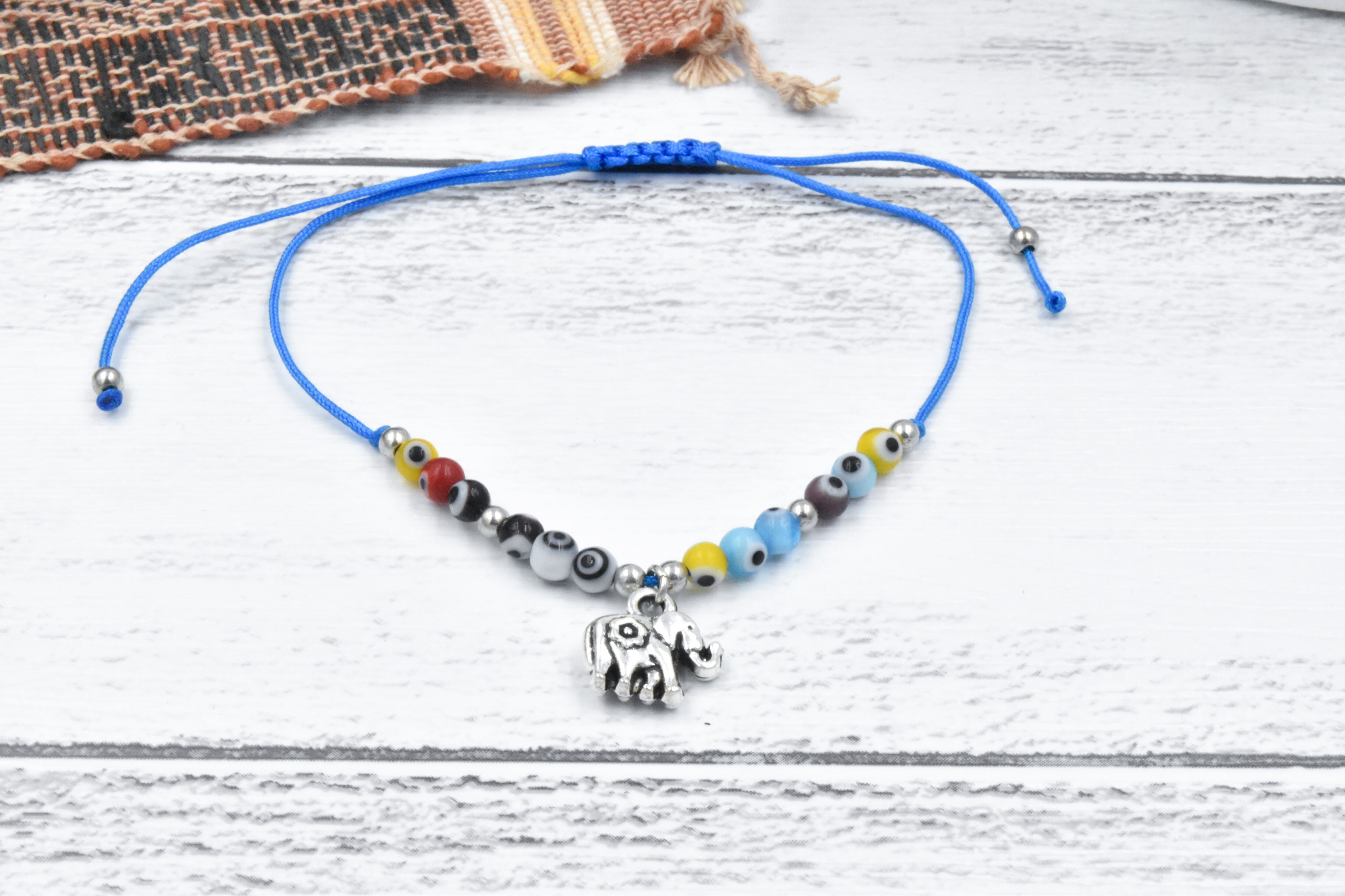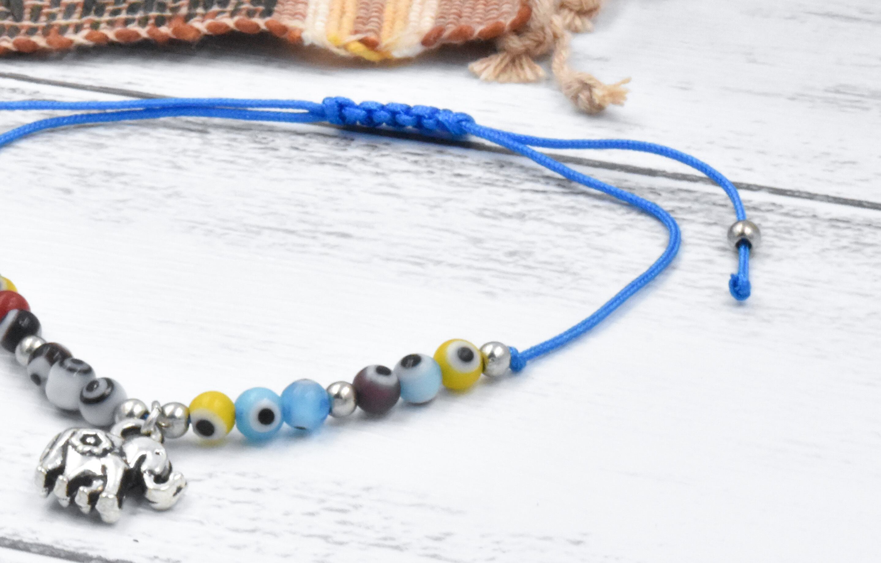 エレファントと小さなナザールボンジュウの石が沢山ついたとても可愛らしいアジアン、エスニックブレスレットです。