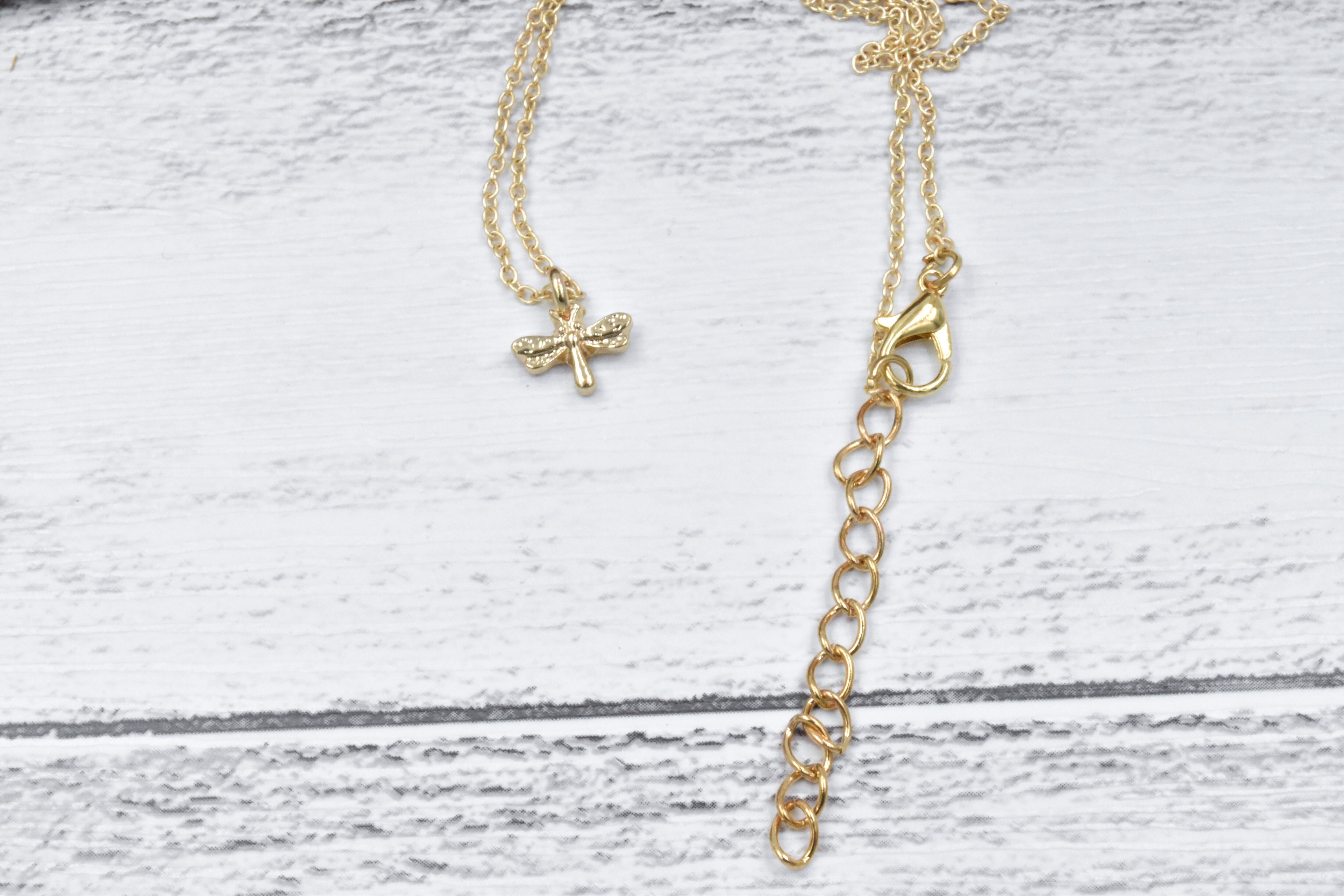 トンボの小さなチャームが特徴のゴールドネックレスです。